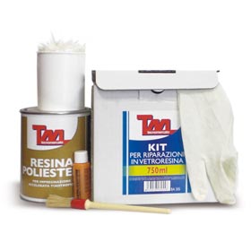 resina poliestere liquida + mq.1 di lana di vetro + bicchierino + pennello.