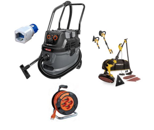 Note: Kit composto da: MIPH0340 Aspirapolvere professionale 1600 W – Serbatoio 40 lt. con scuoti filtro MIPOWX04771 Levigatrice per cartongesso 2in1 telescopica 710W 12 accessori MI73102 Adattatore industriale IP20 MI10015 Avvolgicavo mt.25