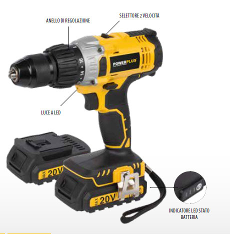 Articolo MIPOWX00445 - Trapano a percussione LI-ION 20V