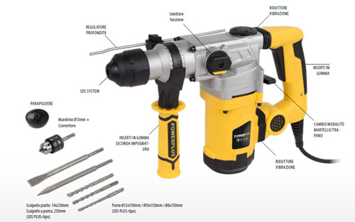 Articolo MIPOWX1179 - Martello a percussione 1600W 3 funzioni